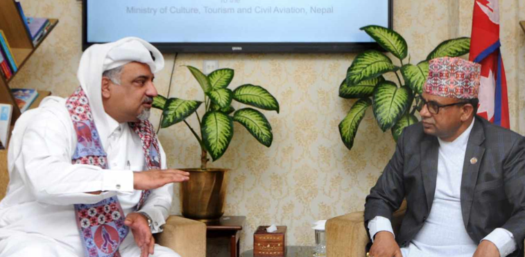 Kathmandu, Sept 3: Qatar’s ambassador to Nepal, Mishaal Bin Mohamed Ali Al-Ansari, today paid a courtesy call on Minister for Culture, Tourism and Civil Aviation, Badri Prasad Pandey.