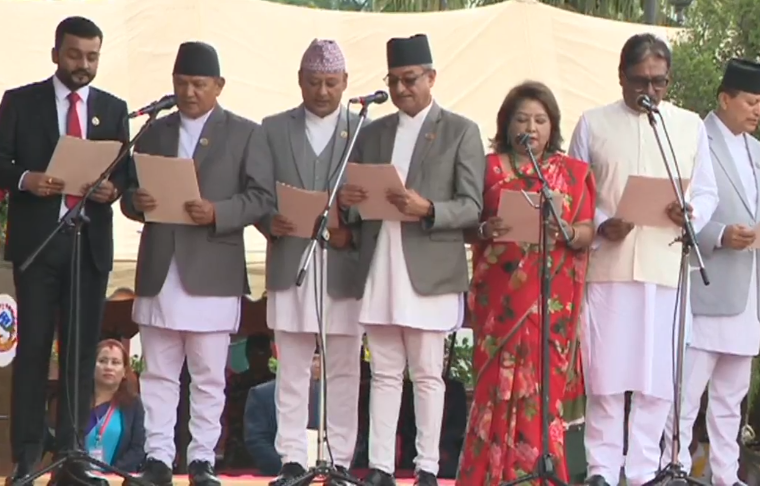 Prior to this, Prime Minister KP Sharma Oli took the oath before the President. It was followed by the oath-taking ceremony of Deputy Prime Ministers Prakashman Singh and Bishnu Prasad Paudel.