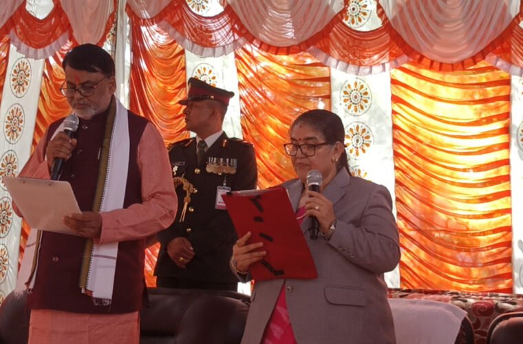 In a ceremony held at the Provincial Chief’s Office in Janakpurdham, Provincial Chief Sumitra Subedi Bhandari administered the oath of office and secrecy to Sonal, a member of the Provincial Assembly from the Loktantrik Samajwadi Party (LSP) Nepal. Sonal took the oath of office in the Bhojpuri language.