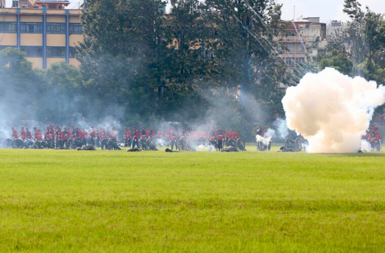 Kathmandu, Sept 29: President Ramchandra Paudel observed the Phulpati feu de joie ceremony–2082 organized at the Army Pavilion, Tundikhel, today.