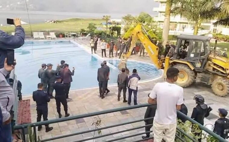 Gandaki, April 4: The Pokhara Metropolitan City has demolished the physical infrastructures built by encroaching upon the areas of the Fewa Lake in Pokhara.