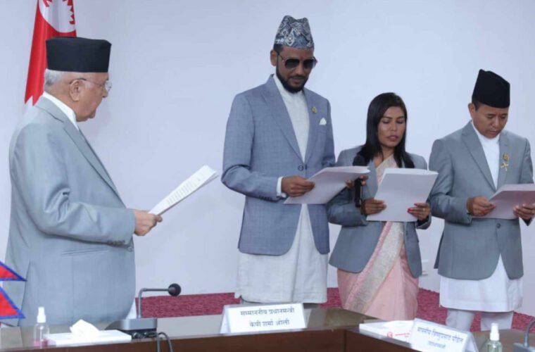 With this, the present Council of Ministers headed by Prime Minister Oli has got a complete shape. The number of members in the present Cabinet has reached 25 with the induction of three Ministers of State.