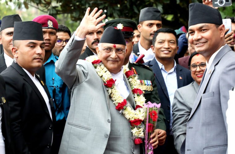 After taking the oath of office and secrecy before President Ramchandra Paudel at the Office of the President today, he visited Lainchaur to pay homage to the martyrs and headed to the CPN (UML)’s party headquarters in Chyasal of Lalitpur. The CPN (UML) Chair Oli became the 45th Prime Minister with the support of Nepali Congress, the largest party in the parliament.