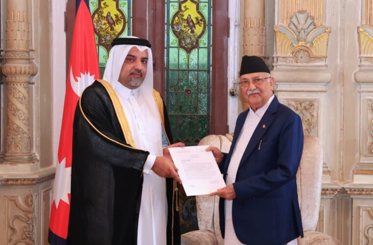 Ambassador of Qatar to Nepal, Mishaal Bin Mohamed Ali Al-Ansari met Prime Minister Oli at the Office of the Prime Minister and Council of Ministers in Singh Durbar today and handed over the invitation.