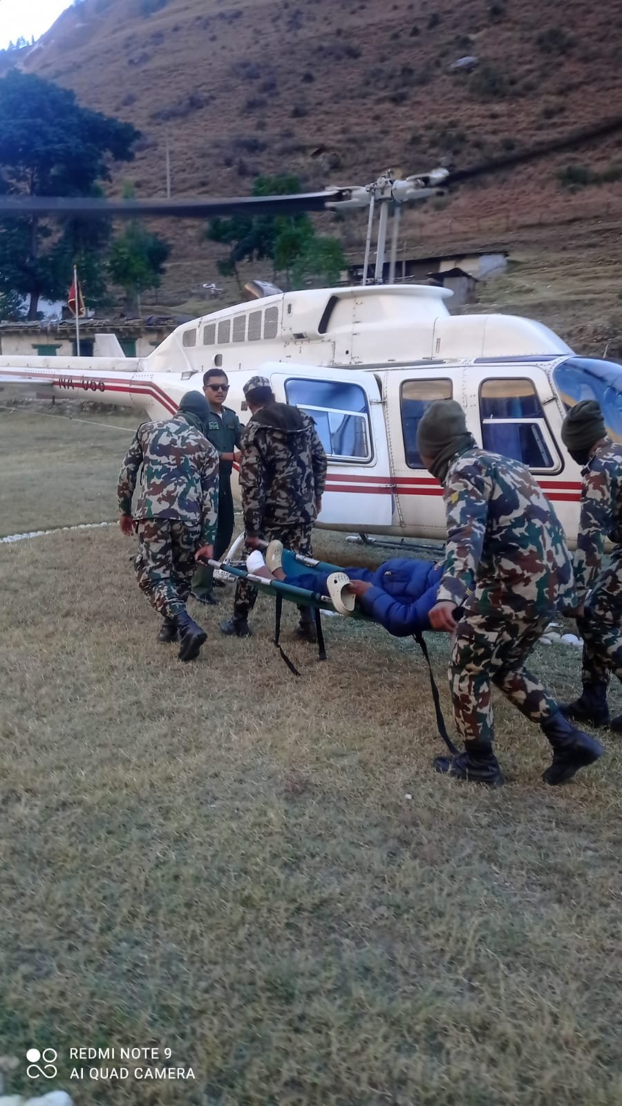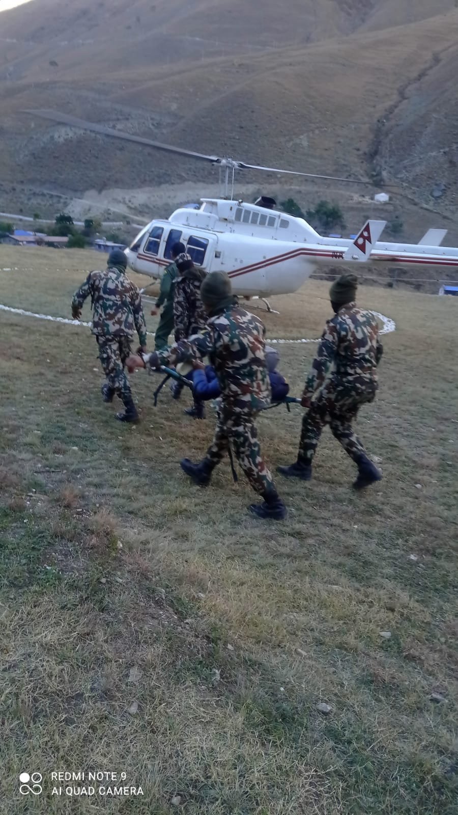 They were airlifted to Karnali Province Hospital, Surkhet. The heavy snowfall occurred on the way caused freezing cold that made the police persons sick while they were heading to the District Police Office, Dolpa from the Area Police Office, Damdo in the district.
