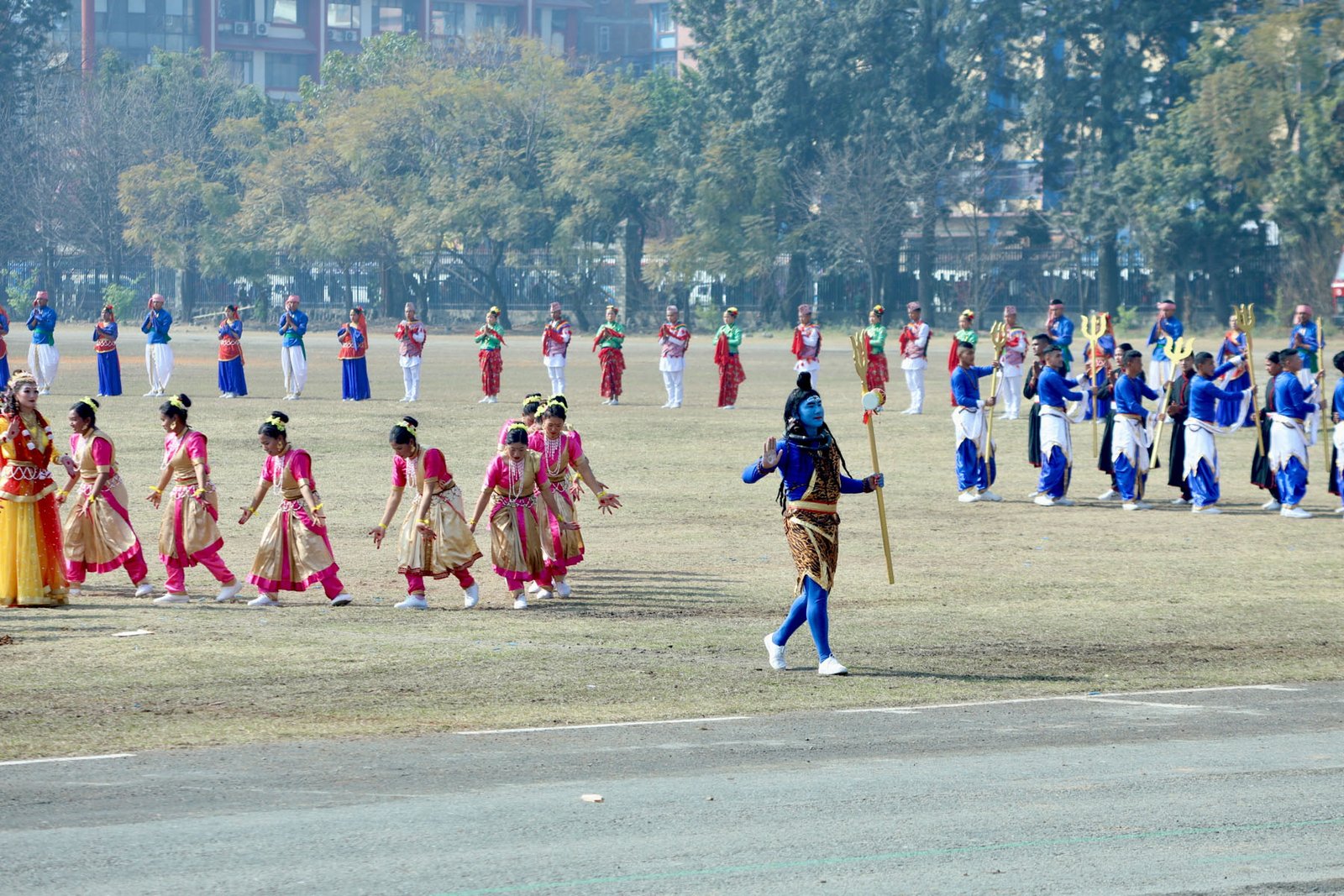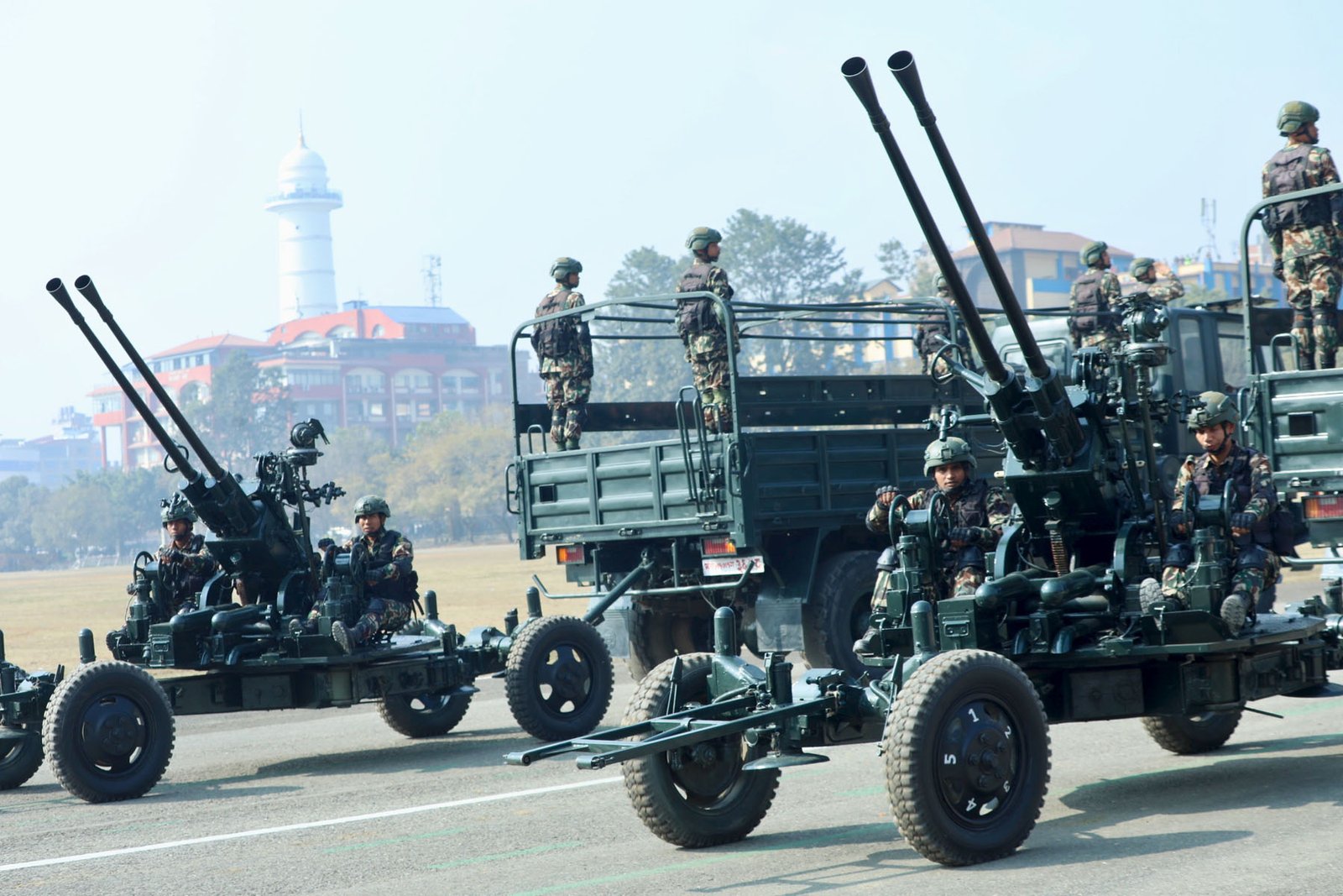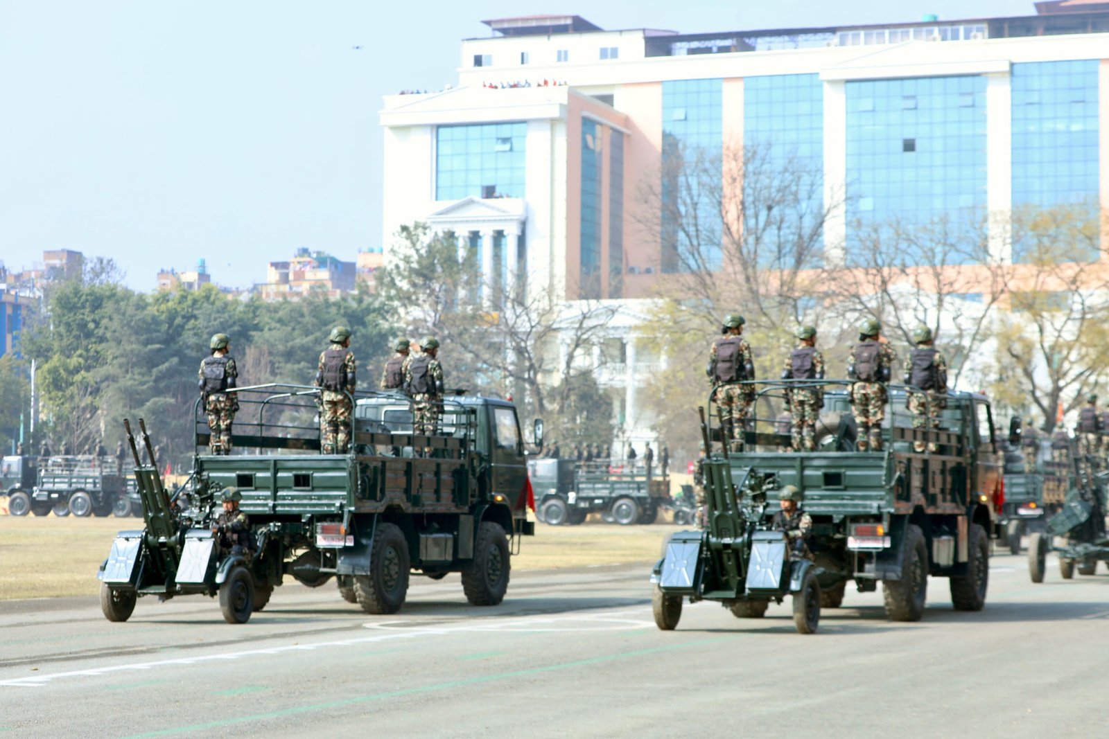 Soldiers of the Nepali Army marked the occasion with celebratory rifle and artillery fire, accompanied by grand parades. The event featured demonstrations of various military skills, floats displaying traditional army attire, and performances by music and dance ensembles. A Nepali Army contingent also took part in the march-past. In addition, a range of vehicles, equipment, and weaponry used by the Army were put on display.