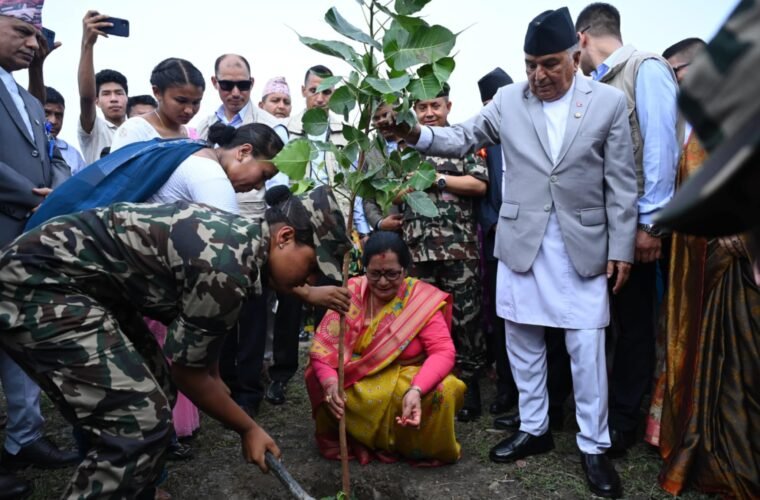 On the occasion, the President couple planted the Bar (Bunyan) and Peepal trees at the Jyotipunja Community Forest that spans to 28 bighas of area (about 18.96 hectares) at Kawasoti municipality-3. The Head of the State was accompanied by his spouse Sabita Paudel.