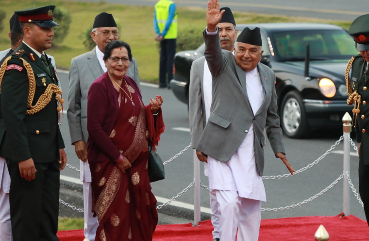 President Paudel was bid farewell by Vice President Ramsahay Prasad Yadav, Prime Minister KP Sharma Oli, and Speaker Devraj Ghimire at VVIP Lounge of Tribhuvan International Airport in the afternoon. A contingent of Nepali Army accorded a guard of honour to the President on the occasion.