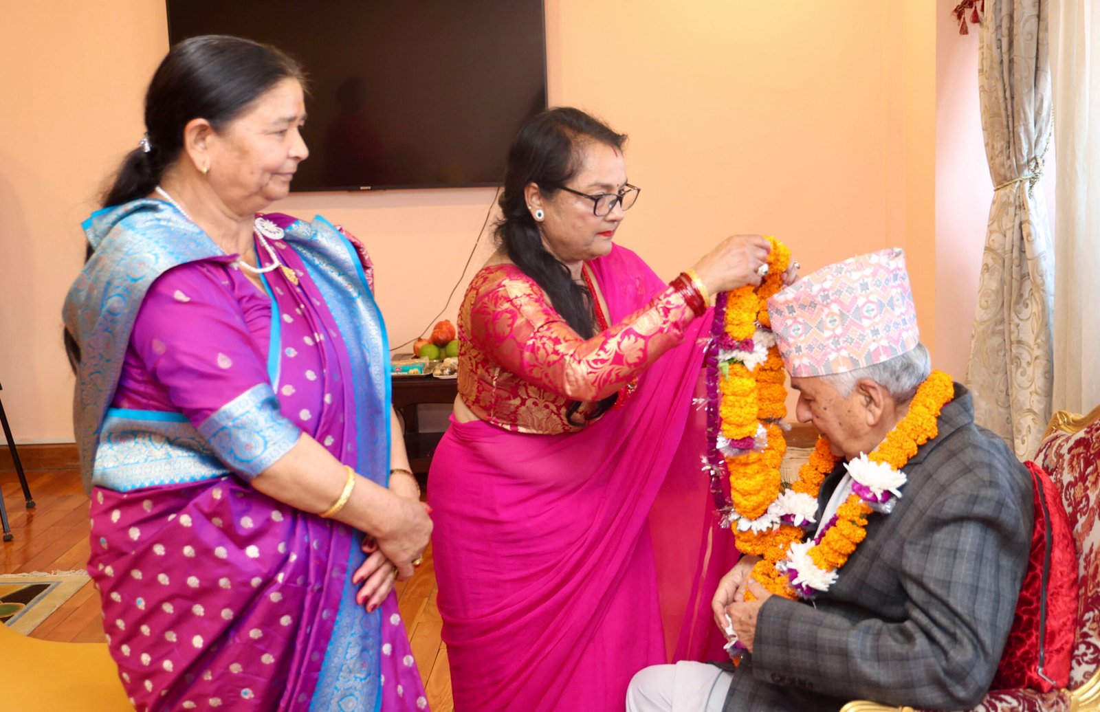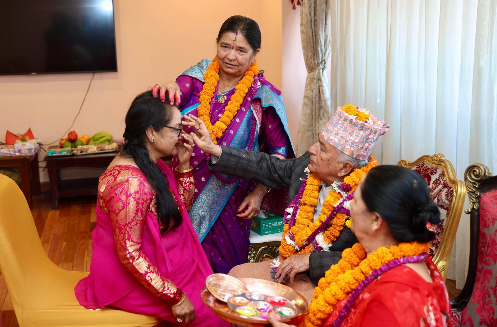 President Paudel receives Tihar ‘tika’ from his two sisters
