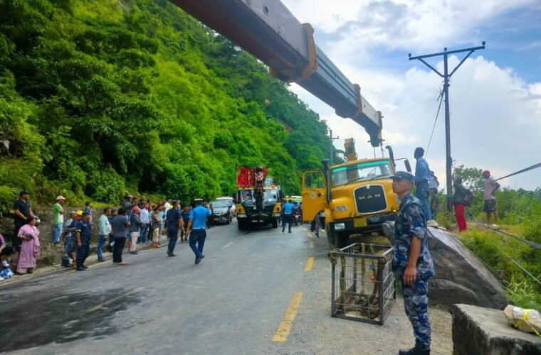 The route was closed to retrieve the bus (UP FT 7632) that plunged into the Marsyangdi River at Ainapahara of Aanbukhaireni rural municipality-2 last Friday, resulting in 27 deaths who were pilgrims from India.