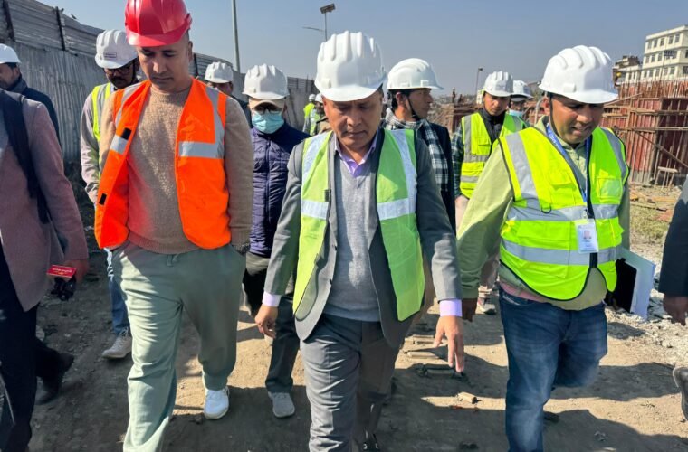 Minister Ghising inspected the under-construction processing centre today and gathered information about the progress of construction. During this, he discussed with the project management involved in construction, consultants, and construction contractors about the schedule for completion, the ongoing issues, and policy decisions required for solutions.
