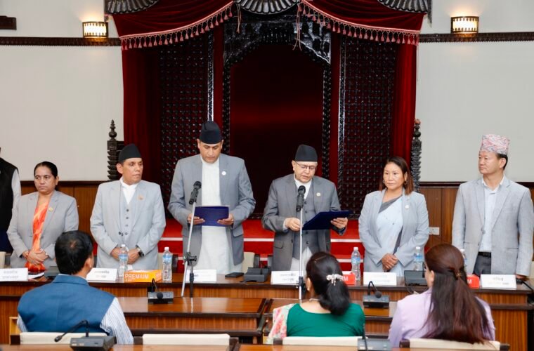 At a programme organised at the Federal Parliament Secretariat in Singha Durbar today, President Khatiwada took the oath before Speaker Ghimire.