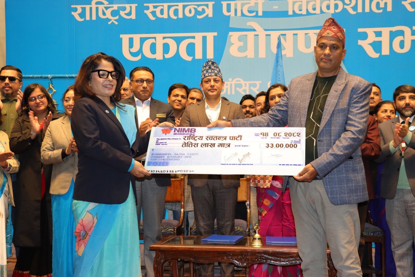 Likewise, after the merger, the party’s name will be Rastriya Swatantra Party and the election symbol will be a bell, informed the vice-chairman of the negotiation committee, Shishir Khanal. Leaders and activists of both parties were present at the announcement programme.