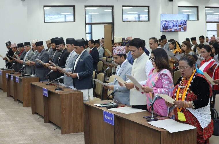 Arrangements related to taking oath of office and secrecy are specified in the Article 99 and 91 (5) of the Nepal Constitution, and the Clause 75 of the House of Representatives Member Election Act, 2074.