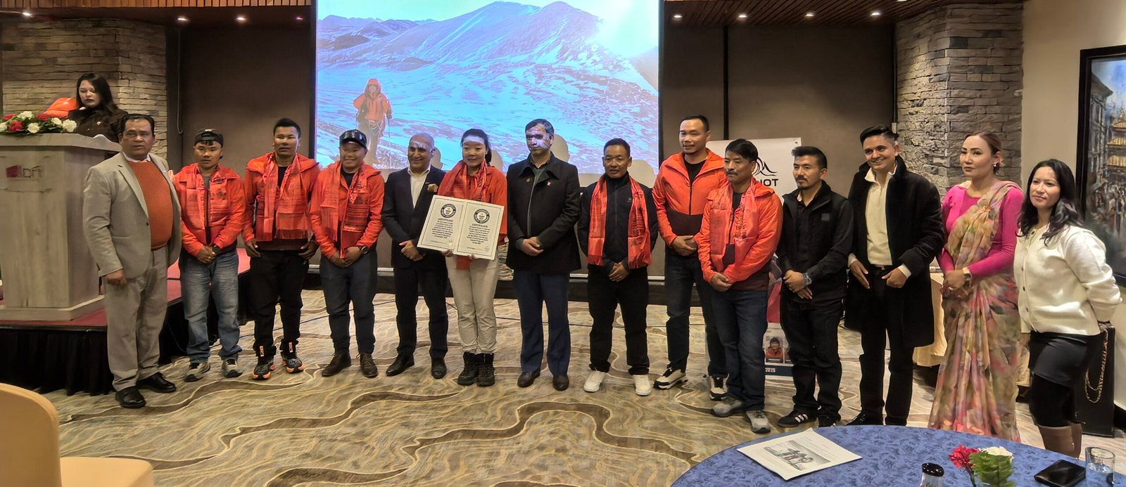 The certificate was handed over by Deepak Raj Joshi, CEO of the Nepal Tourism Board, and Rishi Ram Bhandari, General Secretary of Expedition Operators Association Nepal and NTB Board Member. Team members were also honored for their success.