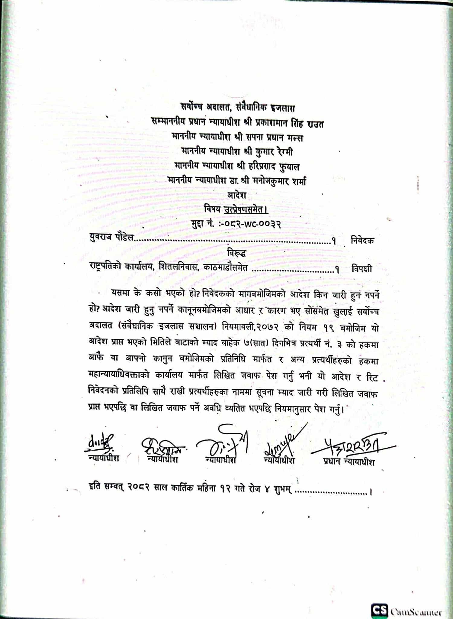The constitutional bench comprising Chief Justice Prakashman Singh Raut, justices Sapana Pradhan Malla, Kumar Regmi, Hari Prasad Phunyal and Dr Manoj Kumar Sharma conducted the hearing on Wednesday.
