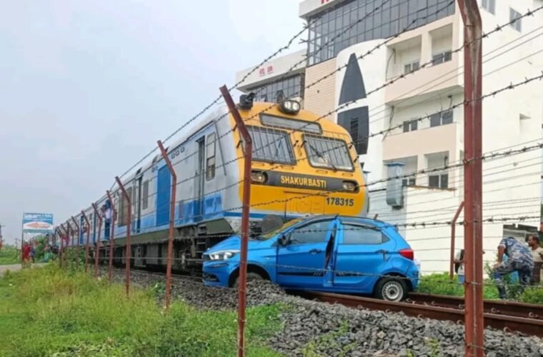 According to local eyewitnesses, a loud noise was heard when the train hit the car, which was reportedly carrying three people. Luckily, the occupants of the car escaped with minor injuries, while the car suffered significant damage.