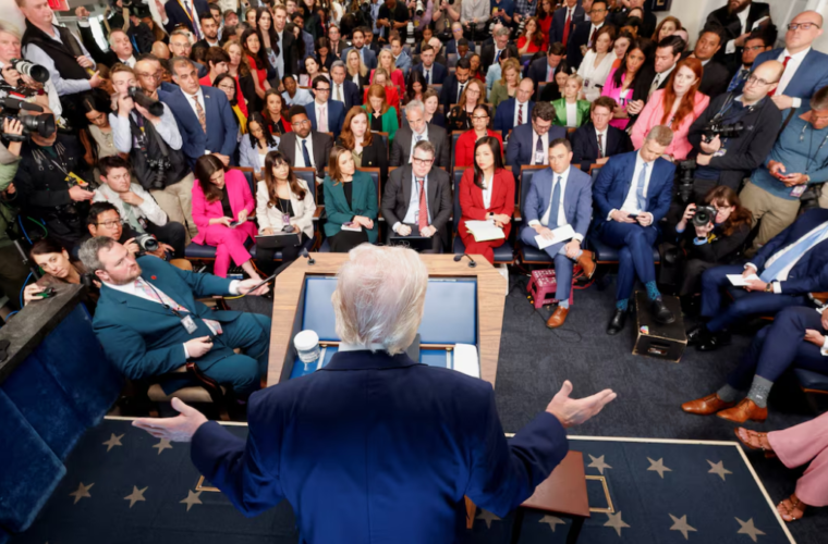 Reporters squeezed into the crowded room, blocking aisles and an entryway, and verbally sparred with one another to gain a more advantageous position in the president’s line of sight.