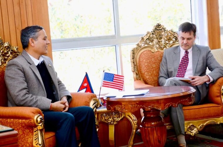Kathmandu, Jan 26: Scott Urbom, the Chargé d’Affaires of the United States of America to Nepal, paid a courtesy call on Minister for Home Affairs Om Prakash Aryal.