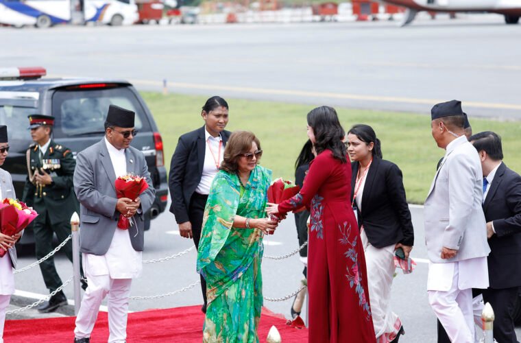 Upon arrival at the Tribhuvan International Airport, the Vietnamese Vice President was welcomed by Foreign Minister Dr Arzu Rana Deuba and Minister for Culture, Tourism and Civil Aviation Badri Prasad Pandey.