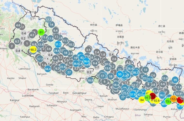 There is also a possibility of heavy rain at one or two places in the Tarai region of Koshi, Lumbini and Sudurpaschim Provinces.