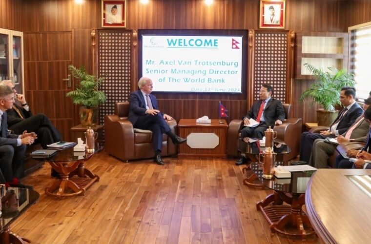 Kathmandu, June 17: Senior Managing Director of the World Bank, Axel van Trotsenberg, met with Finance Minister Barshman Pun today at the Ministry of Finance in Singha Durbar.