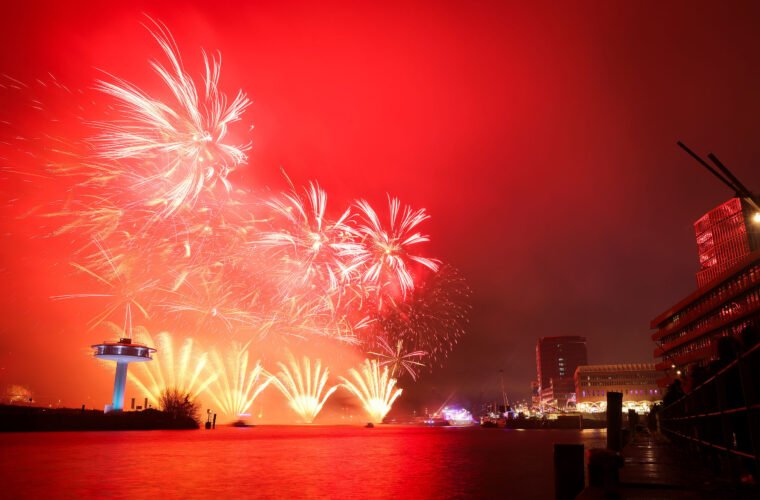 In Dubai, thousands of revellers queued for up to nine hours for a spectacular fireworks and laser display at the Burj Khalifa, the world’s tallest building.